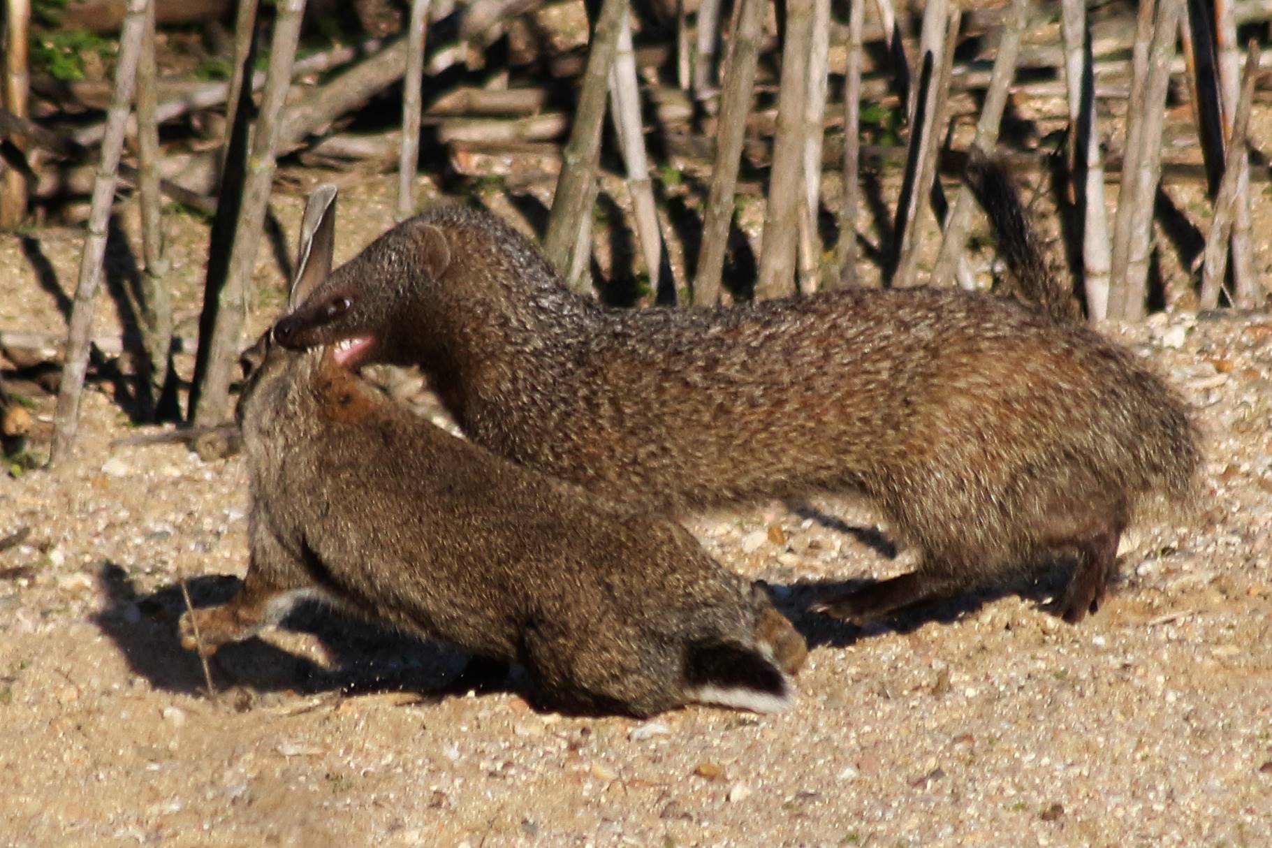 A Natureza, por vezes, pode parecer cruel mas desde tempos imemoriais que existe uma cadeia alimentar, com predadores e presas. Nesta foto, captada na Quinta do Casal da Coelheira, em Tramagal (Abrantes), o predador é um sacarrabos e a presa um coelho-bravo.