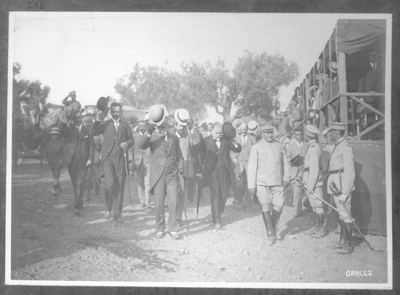 Num grande terreno plano junto à aldeia, da estrada para a banda do Tejo, montou-se uma tribuna, decorada com as bandeiras de Portugal, do Reino Unido e de outros países aliados, em que tomaram assento as altas personalidades para assistir ao acontecimento. Presidida pelo chefe do estado, Bernardino Machado, a cerimónia teve a presença das mais importantes figuras do regime – o presidente do Senado Correia Barreto, o presidente do Governo António José de Almeida, o ministro da Guerra Norton de Matos, o presidente da Câmara dos Deputados Manuel Monteiro, vários ministros e os oficiais da guarnição. Entre os convidados, destacavam-se relevantes figuras do corpo diplomático, como os ministros (embaixadores) da Bélgica, do Reino Unido e da Rússia.