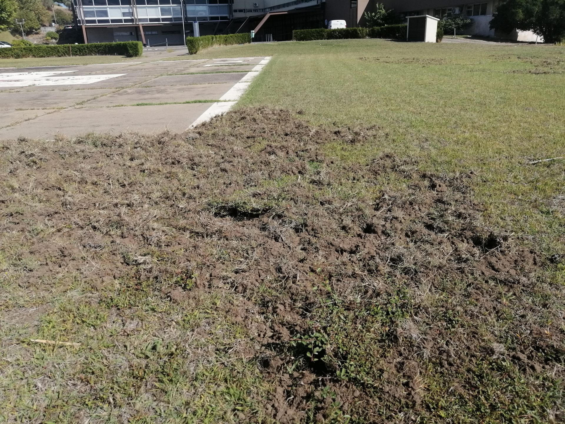 No video registado por Vera Lopes, é possível ver que as três crias e a mãe deixam um rasto de relva revolvida em busca de tubérculos, raízes ou outro tipo de alimento, numa situação que já aconteceu também dentro do perímetro do hospital da cidade, com a relva toda arrancada pelos javalis em torno do heliporto (ver fotos).