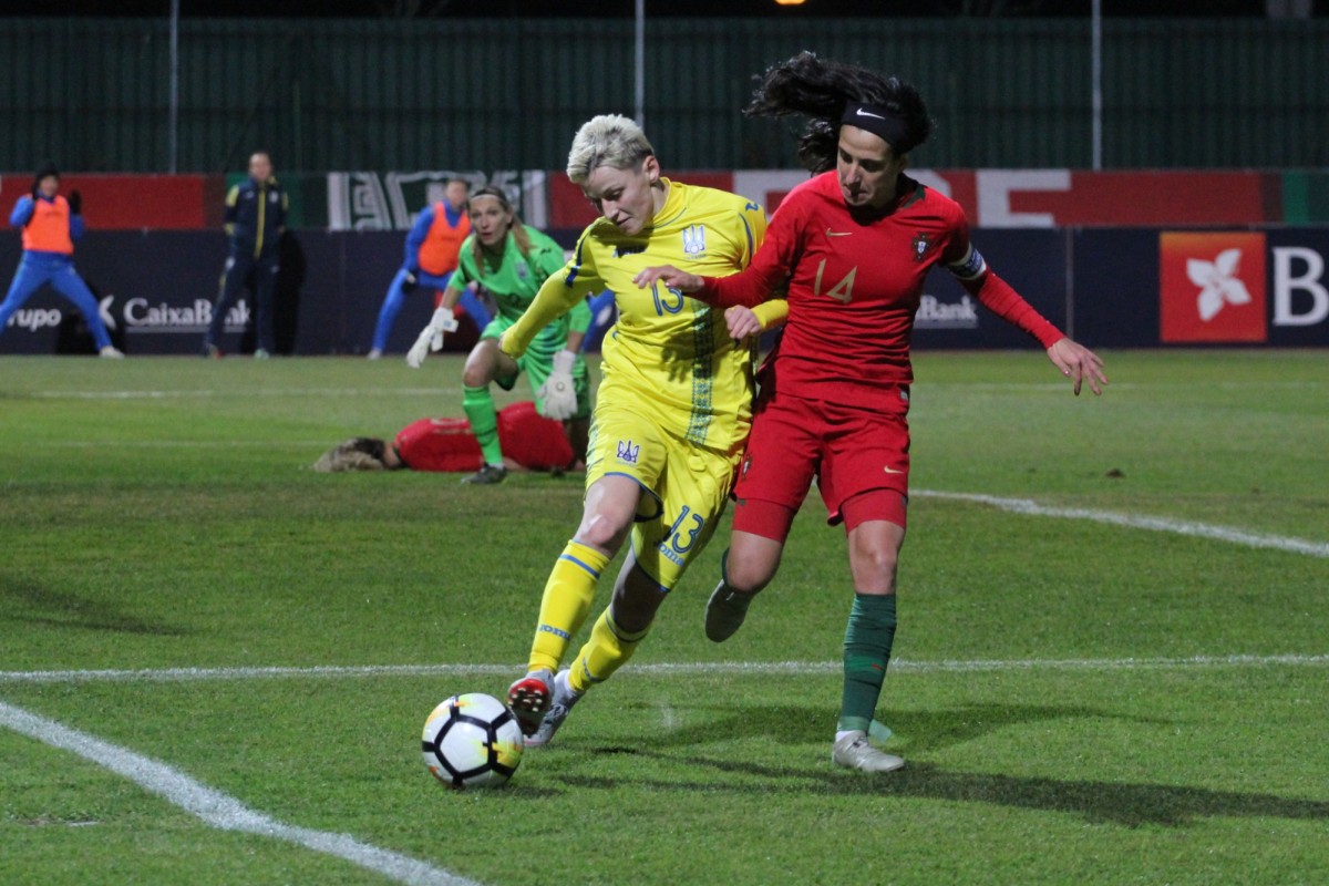 Perante uma forte equipa ucraniana, os primeiros 25 minutos foram de muita luta a meio-campo, mas com clara supremacia da seleção portuguesa, que causou muitos problemas à defensiva adversária e construiu várias situações de golo, sem que as jogadoras portuguesas conseguissem materializar o ascendente ofensivo.