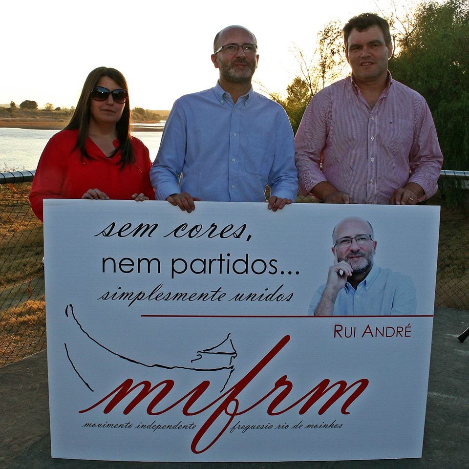 Sob o lema “Sem cores, nem partidos…simplesmente unidos”, o Movimento Independente da Freguesia de Rio de Moinhos (MIFRM), no concelho de Abrantes, apresentou no cais de acostagem junto ao rio Tejo a lista candidata às eleições autárquicas a realizar no dia 1 de outubro. Rui André, atual presidente de junta, eleito em 2013 pelo PSD, deixou os partidos políticos e decidiu avançar para uma recandidatura com uma lista de independentes. Na apresentação pública dos projetos e dos 25 membros da lista, na sexta-feira, não passaram despercebidas as presenças de dirigentes de vários partidos políticos, como Margarida Togtema, António Lopes e Elza Vitório (PSD), José Vasco Matafome, presidente da distrital do CDS-PP e candidato à Câmara de Abrantes, e ainda de Santana-Maia Leonardo, ex-vereador do PSD, hoje retirado da vida partidária mas amigo pessoal do candidato dos tempos de vereação.