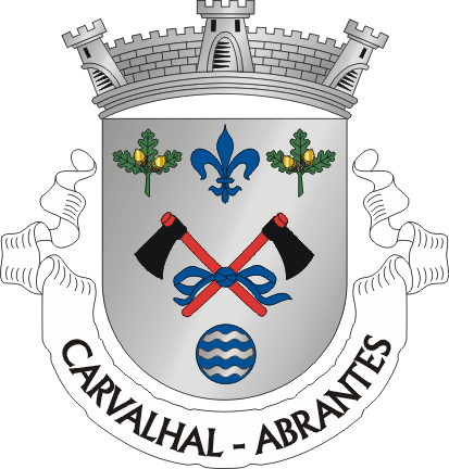 Descrição do brasão: Escudo de prata, dois machados de negro encabados de vermelho, passados em aspa e atados de azul; em chefe, uma flor-de-lis de azul entre dois pés de carvalho de verde, landados de ouro; em ponta, uma arruela de azul, carregada de três burelas ondeadas de prata. Coroa mural de prata de três torres. Listel branco com a legenda a negro, em maiúsculas: “CARVALHAL – ABRANTES“.