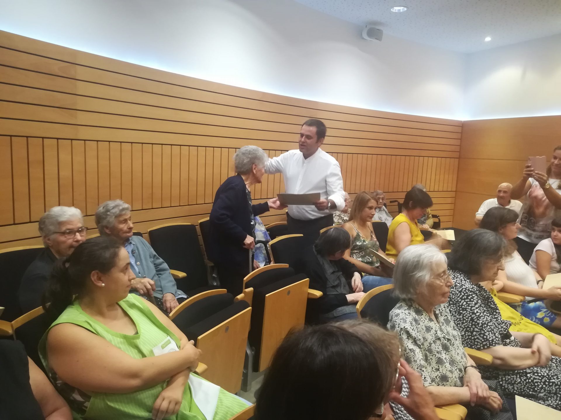 Os certificados foram entregues aos utentes ou familiares pelo autarca Vasco Estrela, pelo médico Novais Tavares e pelos vereadores Nuno Barreta (proponente desta iniciativa) e Margarida Lopes, num auditório quase cheio e perante utentes que chegavam à impressionante idade de 105 anos, caso de Maria do Rosário, sempre acompanhada pelo marido Luís da Pomba, de 95.