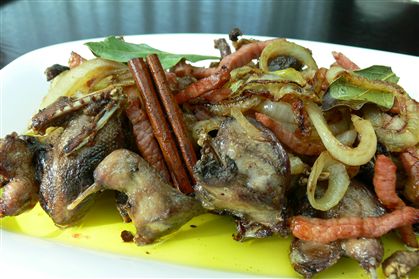Passados alguns dias o «Zé» Dinis falou-me em tordos servidos numa locanda abrantina e, segundo ele, os pássaros eram preparados de modo a provocarem grácil e profundo prazer palatal. Fomos abordar o senhor entendido na matéria de cozinhar aquelas aves de carne delicada, que se alimentam de sementes de azevinho, de bagas e uvas, por isso inimigas dos vinhateiros, sendo caçadas Novembro, Dezembro e Janeiro.