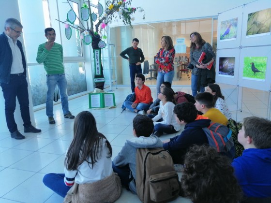 Por ser exclusivamente sobre aves da região do Médio Tejo – algumas das espécies reveladas pelo fotógrafo na sua rubrica semanal no nosso jornal – esta exposição integrou-se nas comemorações do dia Mundial da Árvore, 21 de março, dia em que o artista esteve na escola para apresentar o seu trabalho e falar com algumas dezenas de alunos, que o questionaram de forma viva e interessada sobre cada espécie de ave fotografada e registada nos painéis em tamanho gigante.