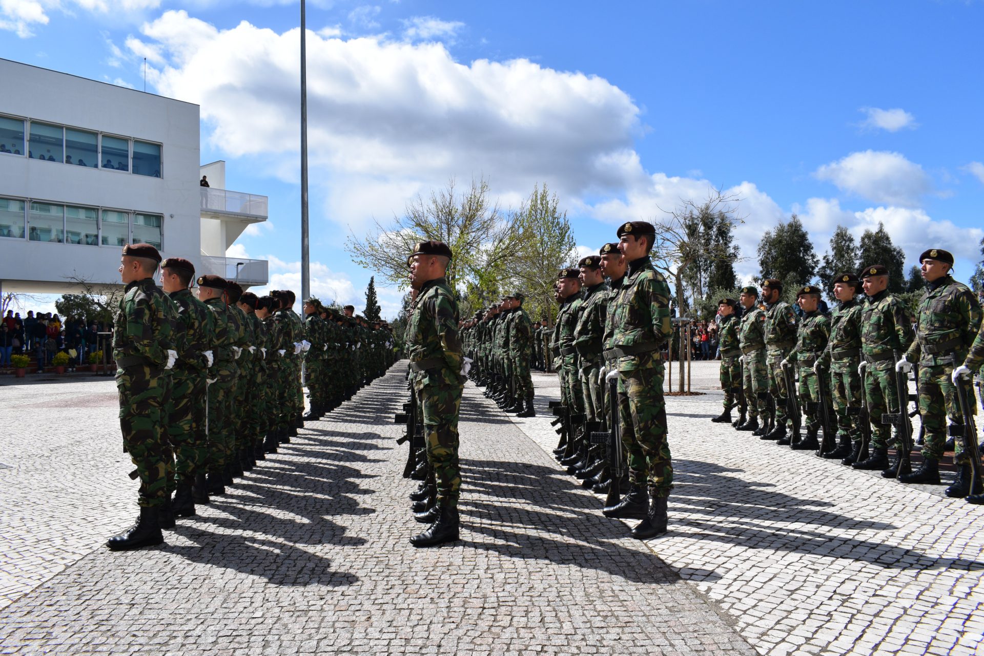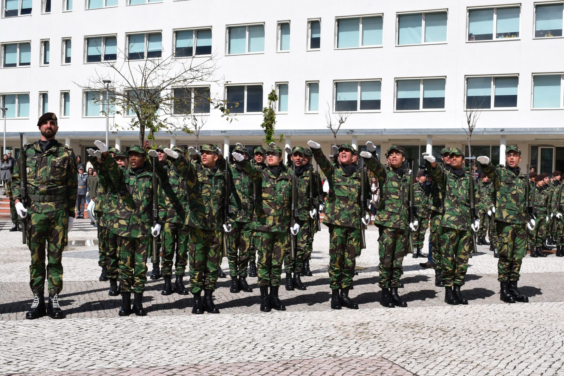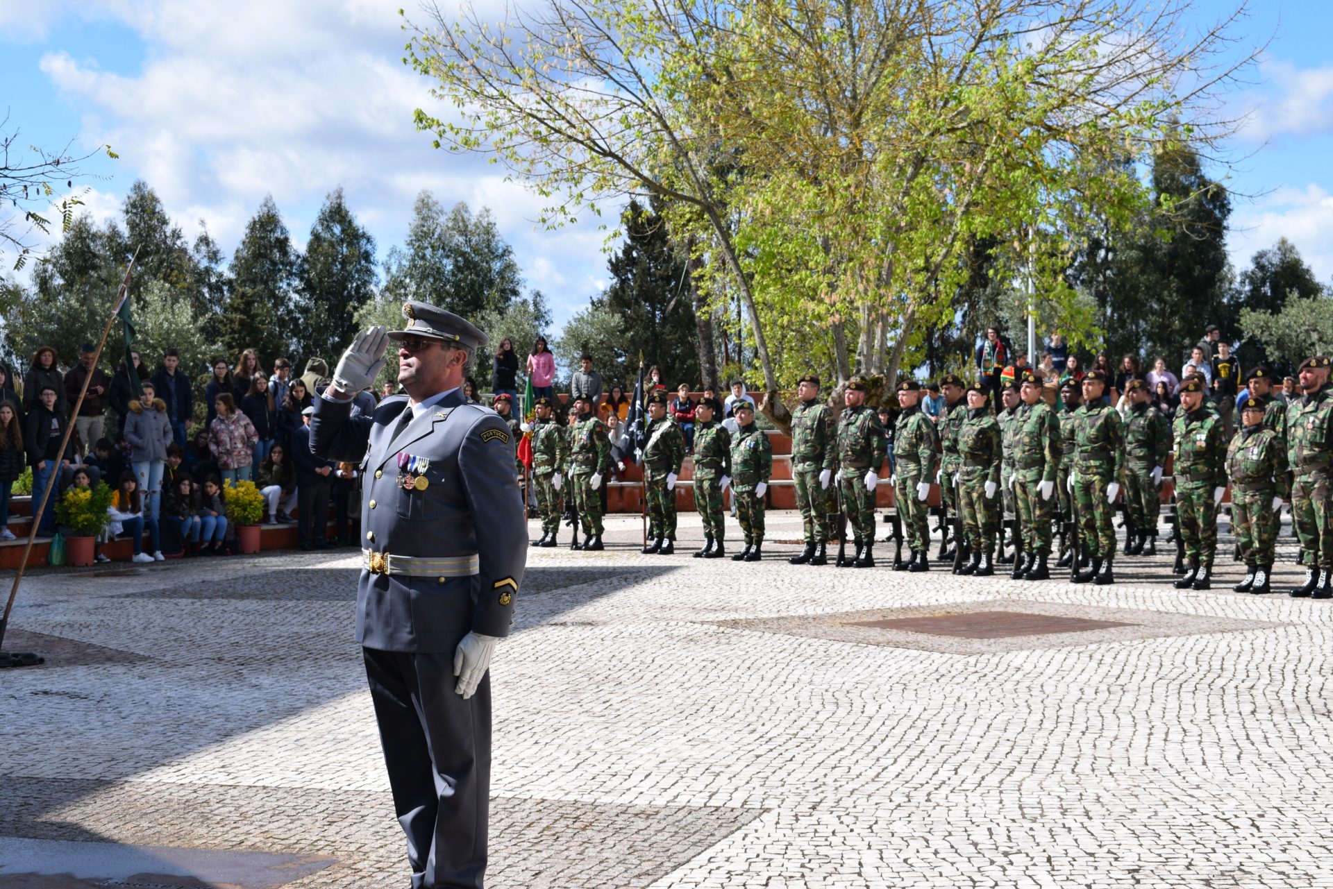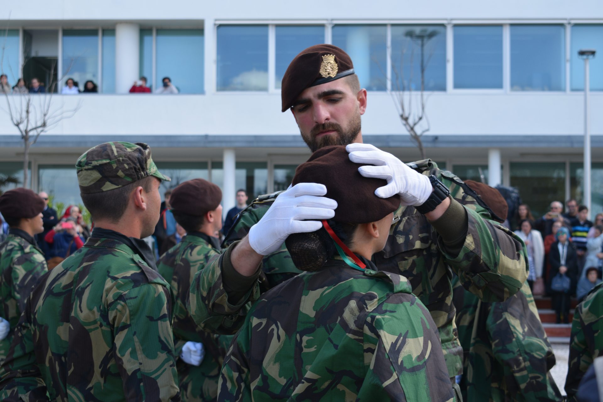 Chegou a altura de se dizer “Juro” perante o Estandarte Nacional e o compromisso foi assumido em uníssono pelo grupo de 35 homens e cinco mulheres que recebeu as boinas castanhas na “Praça da Liberdade”. Os primeiros foram os soldados Pedro Barros, Hélio Pires e Oceano Wahnon, que se destacaram ao nível do Mérito Pessoal (15,33 valores), Mérito Escolar (19,39 valores) e Desembaraço Físico (17,43 valores), respetivamente.