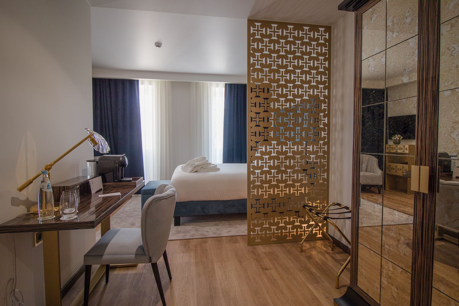 Cada detalhe do hotel foi pensado de forma a proporcionar uma experiência inesquecível para os seus clientes. E mesmo com toda a oferta no centro histórico da cidade templária, será difícil querer sair, mesmo para um copo ou uma refeição. Afinal, pertence também ao hotel o Café República, com a sua animada esplanada, e junto à receção encontra-se o Bar 8, tendo em exposição o espólio encontrado durante as escavações de construção do hotel.