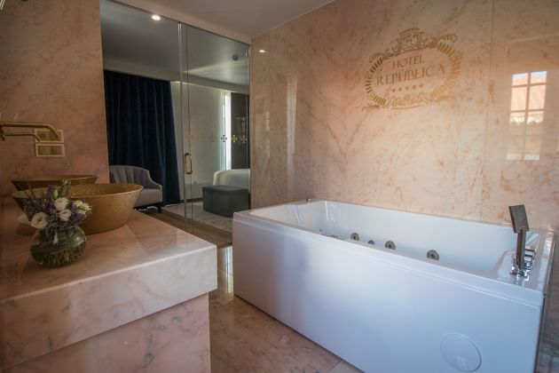 O Hotel República é o único 5 Estrelas de Tomar e foi inaugurado em julho do ano passado. As duas suites do Hotel oferecem uma vista privilegiada sobre a Praça da República e a Igreja de São João Baptista. Com uma cama de casal King Size, têm ainda lareira e uma zona de estar com sofá e secretária separadas da zona de descanso, além da ampla casa de banho em mármore, com uma banheira de hidromassagem.